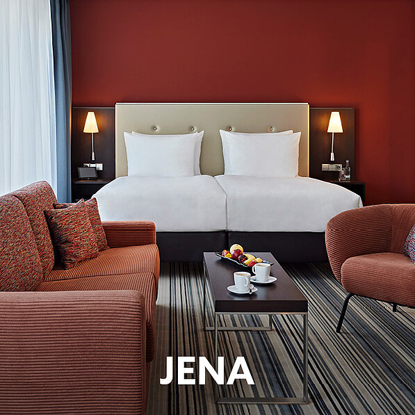 Das Dorint Hotel Esplanade Jena liegt direkt neben der Goethe Galerie im Zentrum der Stadt – ideal für einen erlebnisreichen City Trip. Die schönsten Ecken entdecken Sie fußläufig: sei es beim Shopping oder einem Ausflug zum nahegelegenen Volkspark. Im Herbst strahlt die grüne Oase in voller Farbenpracht und ist zu dieser Zeit ein beliebter Anlaufpunkt. Nach einem eindrucksvollen Tag lohnt sich unsere „Moonlight Bar“ unter der großen Glaskuppel, die in den Abendstunden besonders imponiert.